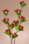 Větvička je poseta červenými bobulkami. Na větvičce dlouhé 100 cm je jich mnoho. Větvička je pěknou dekorací v období zimních svátků.