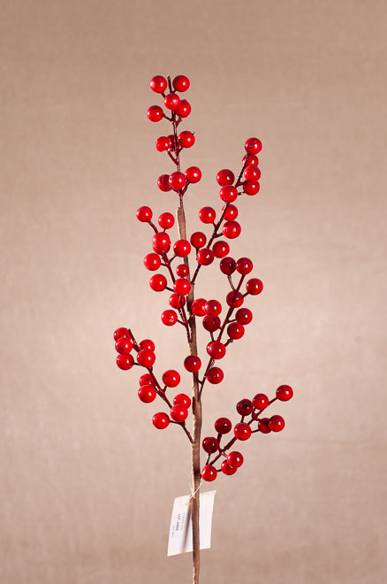 Oblíbená dekorace v období Vánoc. Bobulky mají pěknou červenou barvu a jsou na větvičce dlouhé 61 cm. Větvičku si můžete nakombinovat s jehličím nebo s jinými zimními větvičkami a získáte tak vkusnou dekoraci do vázičky.