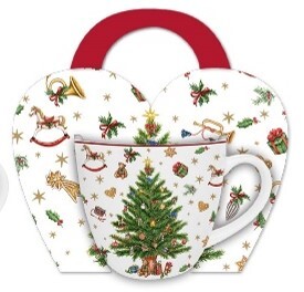 Hrneček z naší vánoční kolekce. Jeho objem je 460 ml. Vyroben je z porcelánu. Součástí výrobku je papírová "košilka", do které si hrnek můžete zavěsit.