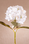Hortenzie s bílým květem velkým 18 cm a čtyřmi zelenými listy. Květina je mírně posypaná třpytkami, a tak působí svátečně, a to zejména v období Vánoc.