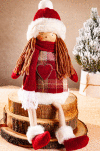 Vánoční dekorace, panenka, kterou si můžete posadit na poličku, ke stromečku, na římsu krbu, apod. Panenka je oblečena do červených károvaných šatů, které mají na přední straně srdíčko. Panenka má dlouhé vlasy. Na hlavě má červeného kulicha olemovaného bílým kožíškem. Čepice má bílou bambuli. Panenka se usmívá a je milou dekorací o vánočním čase.