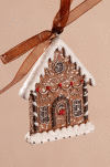 Perníkový domeček je polyresinová dekorace, která slouží k výzdobě vánočního stromečku. Dekorace je krásně nazdobená a lehce potřpytkovaná. Zavěsit si ji můžete na větvičku díky hnědé stužce, která je součástí domečku.